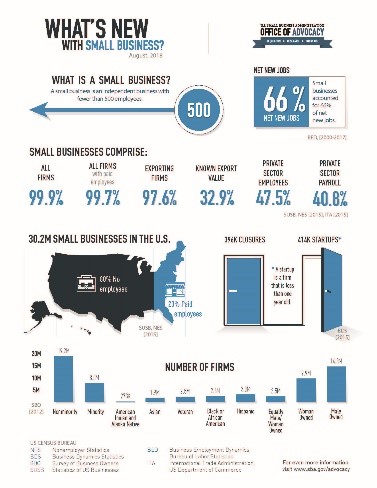 There are some 30 MILLION small businesses in the US. A “small business” is defined as independent businesses with less than 500 employees. And, they come in more flavors than ice cream choices at Baskin Robbins. Think about your own Main Street and all the kinds of businesses serving the community – everything from the pizza shop and local bakery to hair salons and second-hand clothing stores to the local auto mechanic and even some of the banks. We all depend on these small businesses for various needs. Including employment.